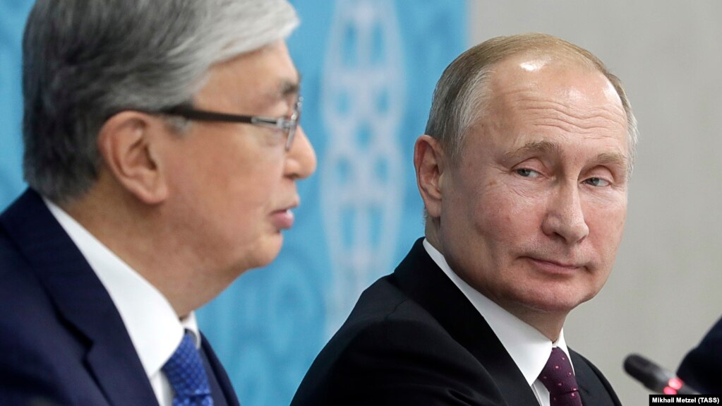 Vladimir Putin (sağda) və Qazaxıstan prezidenti Qasım-Jomart Toqayev (Arxiv fotosu)