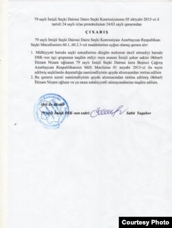 79 saylı dairənin seçki komissiyası buna səbəb kimi onu göstərib ki, o, əmlakı barədə təqdim etdiyi məlumatda 0,06 hektar torpaq sahəsini gizlədib.