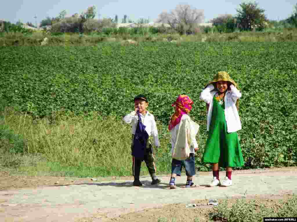 Türkmənistanda uşaqların pambıq tarlalarında məcburi əməyə cəlb edilməsi xüsusi qanunla qadağan edilib. Amma hələ də uşaqlar pambıq yığımı mövsümündə tarlalara işə cəlb edilirlər. Buna görə Türkmənistan dəfələrlə beynəlxalq təşkilatların tənqidlərinə hədəf olub. AzadlıqRadiosunun türkmən redaksiyasının əməkdaşları bu fotoları yenə də uşaqların pambıq yığımına cəlb edildikləri Axal və Lebap rayonlarında çəkiblər.