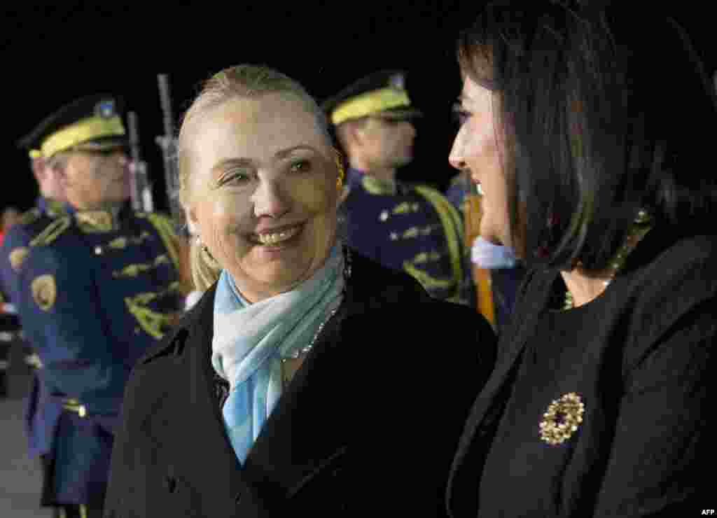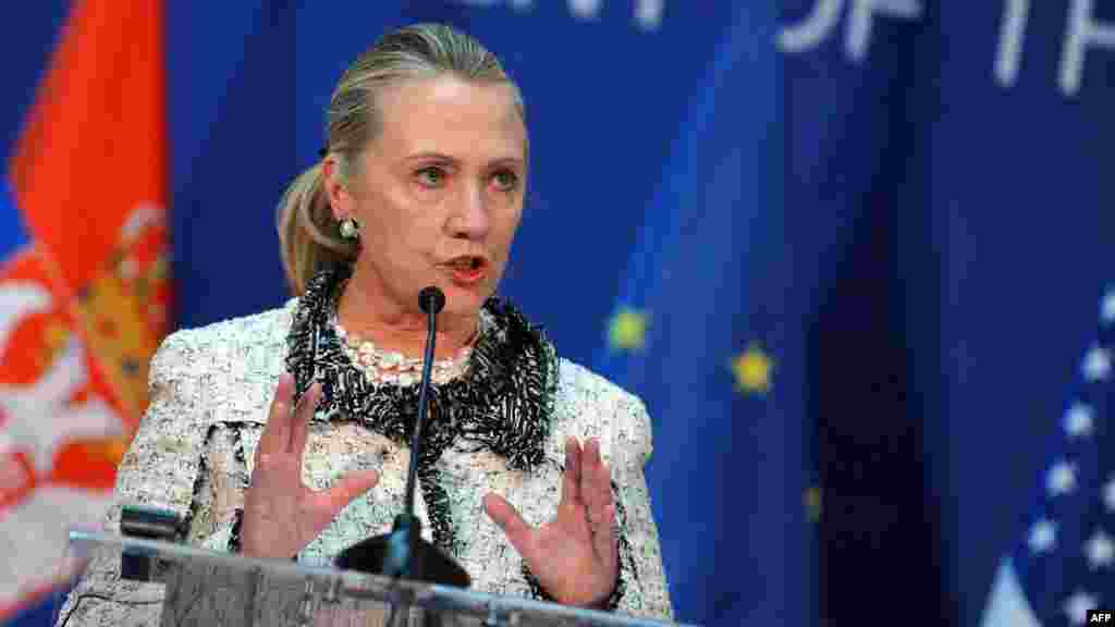Хиллари Клинтон с первым президентом-женщиной Косово и представителем ЕС
