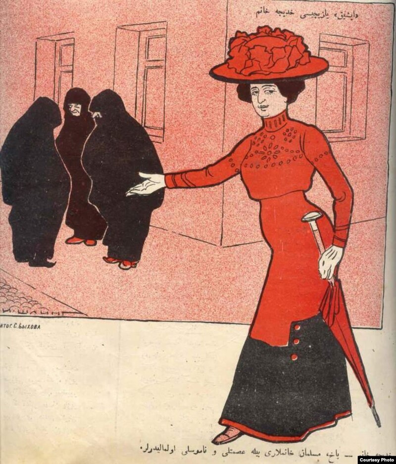 Biz Qafqaz müsəlmanları razı olmarıq ki, övrətlərimiz evdən eşiyə çıxsınlar və üzüaçıq gəzsinlər. Bu bir yaxşı adətdir.